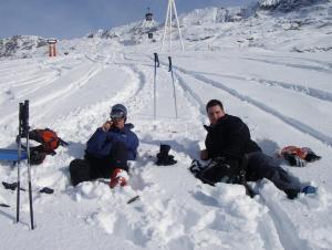 Deshalb standen wir auch von 9-16h30 auf den Brettln, bis zu Mittag mit Didier und Damien zusammen, die beide Skigefahren sind, in einem recht netten Tempo (sie haben immer sehr nett auf mich gewartet :-) ) Und am Nachmittag haben wir uns dann mit mirco getroffen, woraufhin ich den restliche Tag mit ihm ein bisschen gemütlicher gefahren bin.
